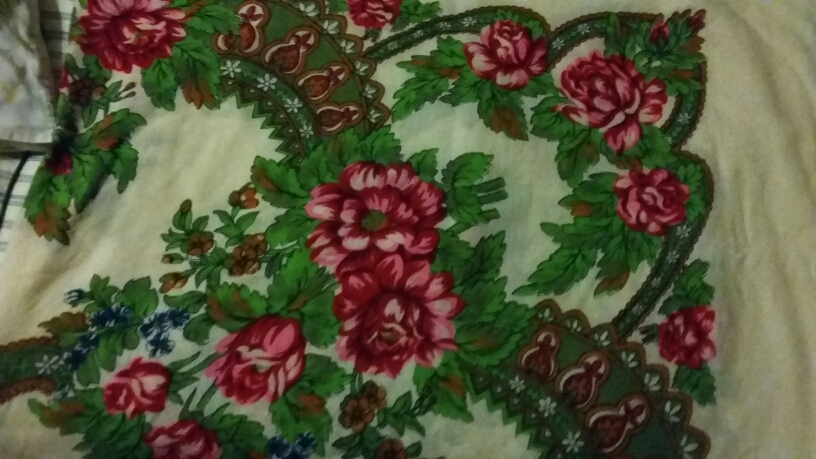 Добрый день, уважаемые форумчанки! Я человек новый на форуме, лишь недавно перешедший из читателей . Пыталась сама опознать свою красоту в Бабушкином сундуке, но пока безуспешно.Возможно совсем и не ППП мой платок,подаренный мамой.Была бумажная этикетка,снятая моей безжалостной рукой во времена "до". Платок любимый, домашний.Прошу вашей помощи !