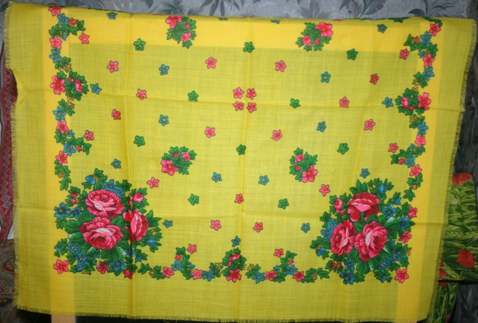Удалось мне купить несколько новых, но давно лежавших платков, шерсть 95 на 95, помогите понять, откуда такое? Может видится в них что-то узнаваемое..