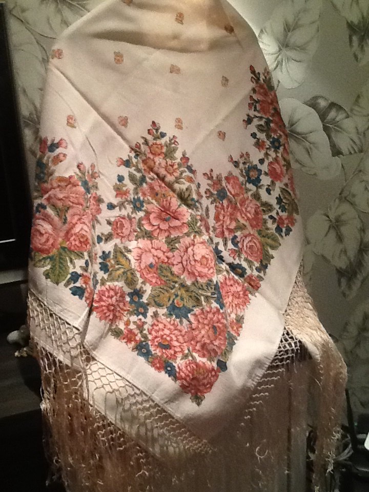 Ткань - хлопок, в точности на таком печатали хб шали в 1970-80-е гг в Павловском Посаде.