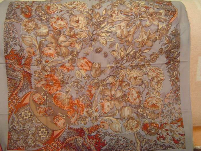 Девушки, добрый день и прошу помощи! Все глаза проглядела, не смогла найти эту шаль в БС.. Поначалу, при первом взгляде на нее, подумала, что украинского производства, но приглядевшись-потрогав-пощупав-понюхав, склоняюсь к мысли, чо это ППП и ручной набойки. Платок шерстяной, 150х150см.
