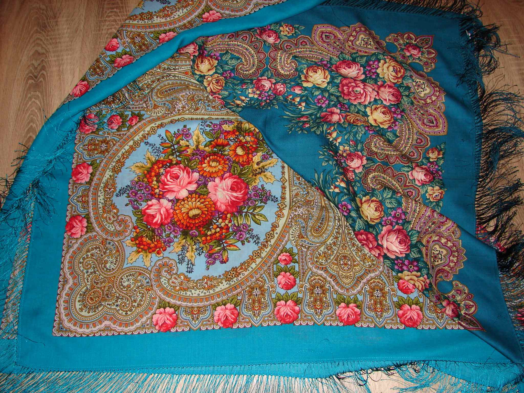 Полюбила эту шаль давно, после того, как её Slana сравнила с Весной. Приобрела синюю, а 17 колорит намного спокойней, там такие пудровые и нежные розы.