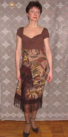Eva! Я в вашем платье (ну не в вашем, а в сделанном по фотографии) пойду на день рождения подруги в кафешку. У меня есть черный платок с розами. Я его намотала на черную майку. Получилось ОБАЛДЕННО.