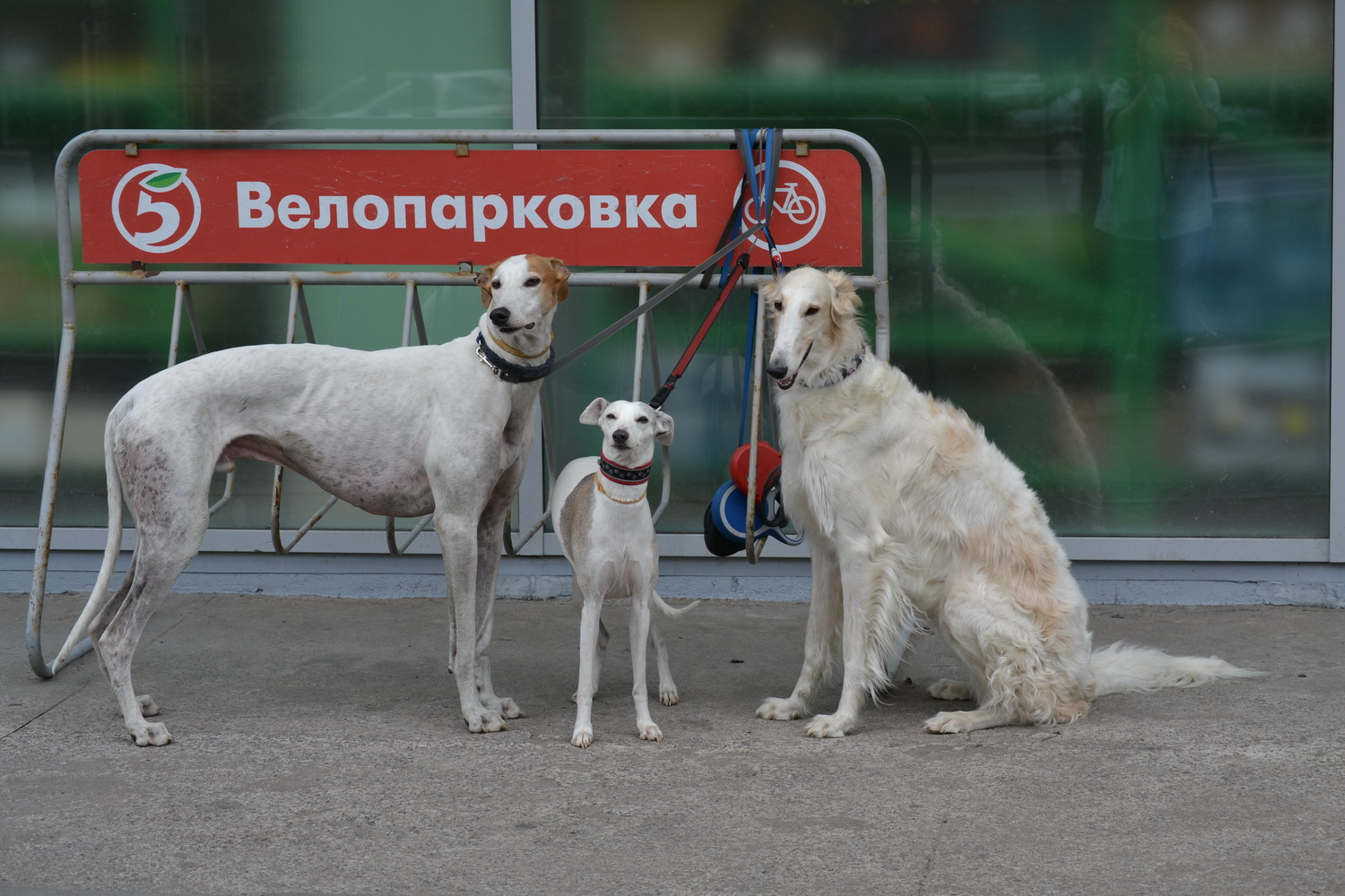 Пока только одно фото из нашей городской жизни. Иногда надо забежать в магазин, хорошо, когда есть куда привязать собак. Мы припарковались)))