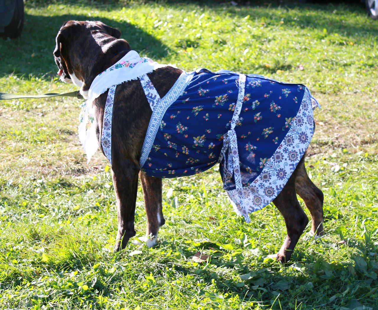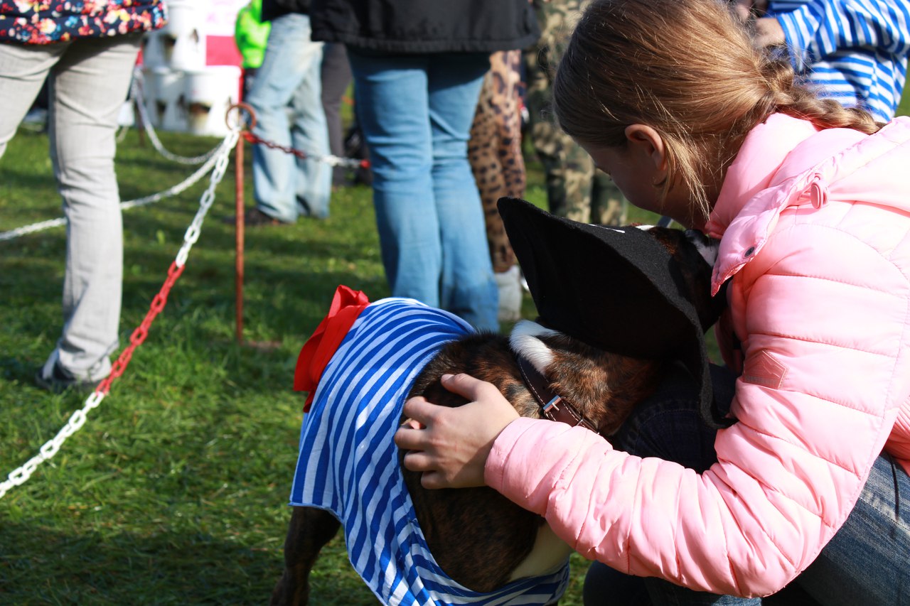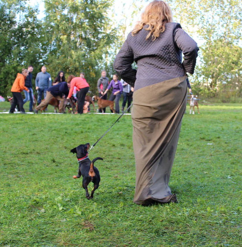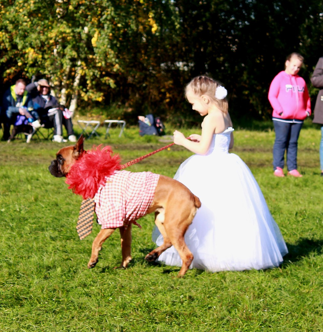 Тильда с папенькой (человеческим) принимала участие в выставке и эстафете, в конкурсе костюмов нас не было- в сарафанчике это не Тильда, но очень приятные- и хозяйка и собака, костюм-сарафан, понравился )) Первое место отдали малышам- пирату и его сестре . Посмеялись от души, хорошее настроение было у всех , позитивная встряска перед началом рабочей недели...) Было много детей, для них проводилась детская эстафета, без собак, спортивная (дети хоть на время оторвались от гаджетов)