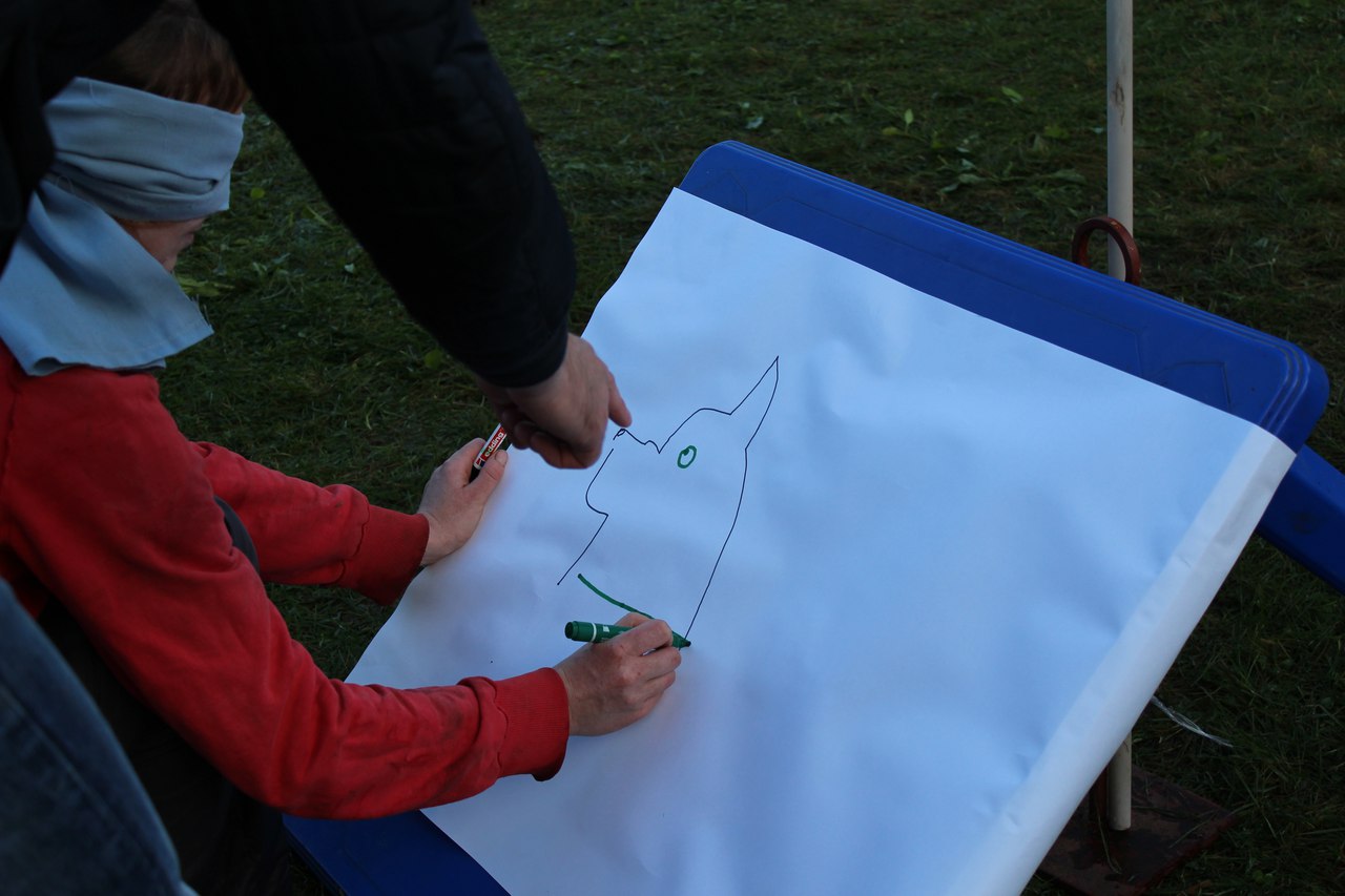 Конкурс капитанов команд - нужно было нарисовать боксера с завязанными глазами, но с помощником ))