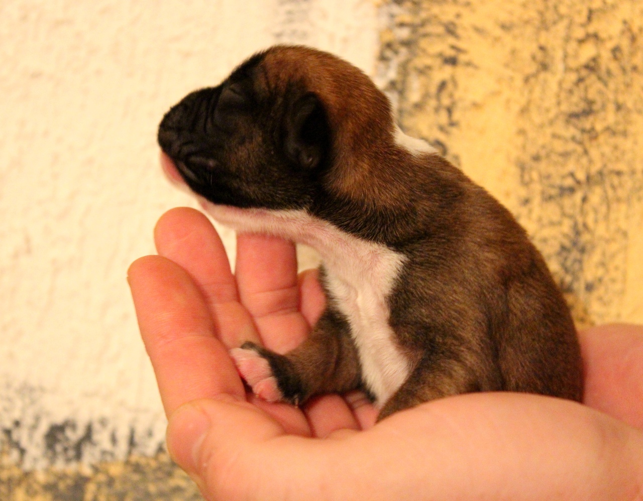 У Тильды видимо меньше восьми щенков рожать не получается и все колориты на выбор окрасы боксерские все разом ...
