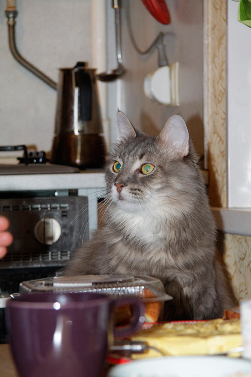 Брамсу в Москве одному скучно, целыми днями спит. Взрослый кот, шерсть на брюхе пости до пола, солидный и степенный.