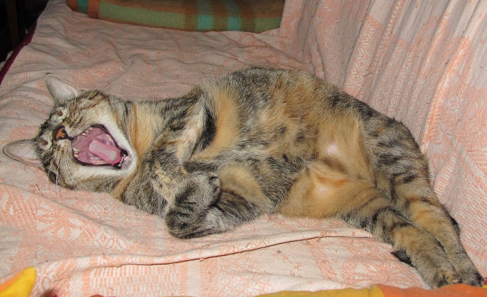 Сейчас Персик с Мухой с мамой на даче на лето, трое младших в городе. Муха там поймала утром птицу, принесла маме на одеяло. В общем, все как у всех