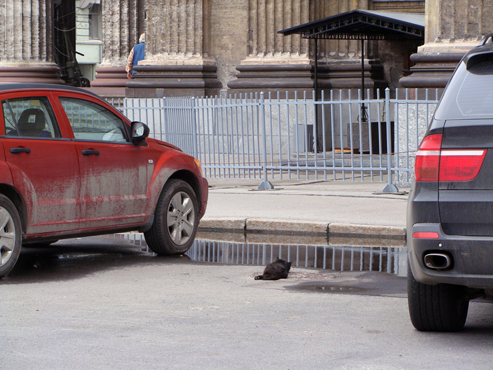 Filamentoza, это видимо сторожевой кот на посту. Сами знаете как трудно найти свободное парковочное место в городе, вот и сторожит пока хозяин отъехал, чтоб не заняли.