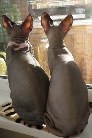 У меня дома зоопарк тоже три сфинкса, пёс и птичка-синичка! :)