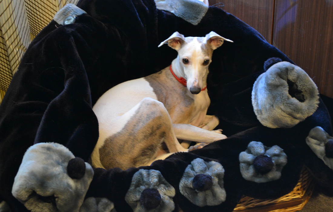 А вот моя королевична Бася. Дома прохладно, а на улице -18