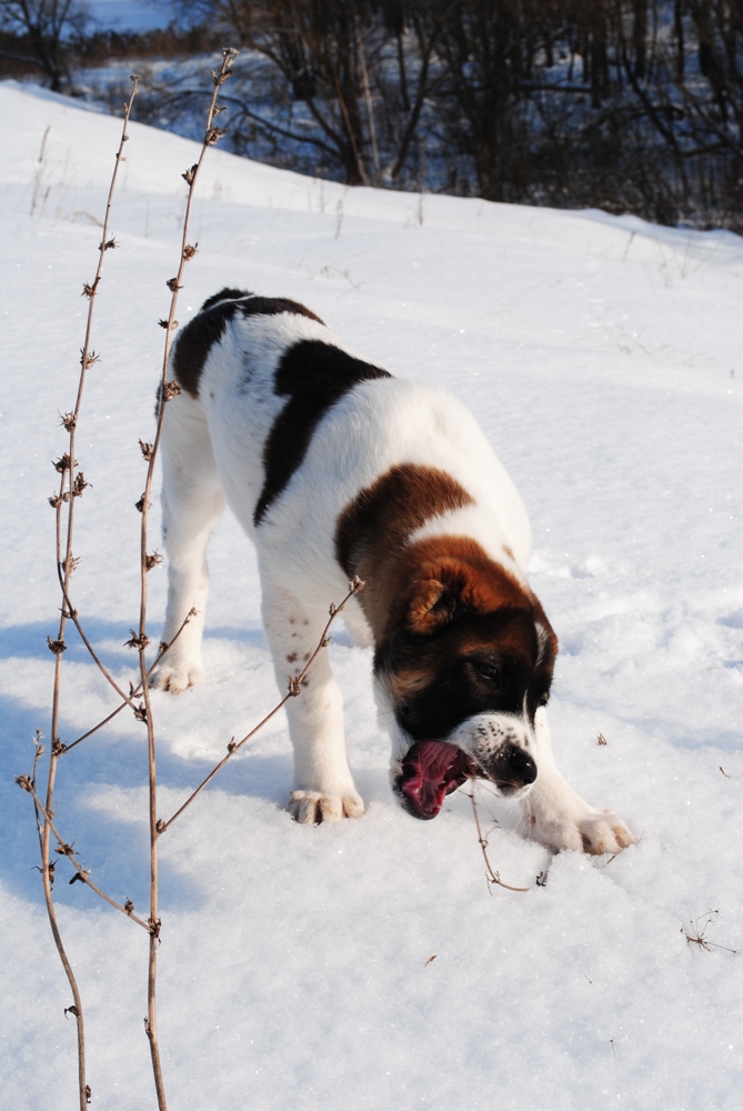 Кайзер, растет, но сразу видно, что еще дитя собачье, глазки умненькие, на моське конопушечки, славный такой, и как же ему хорошо там, на воле!
