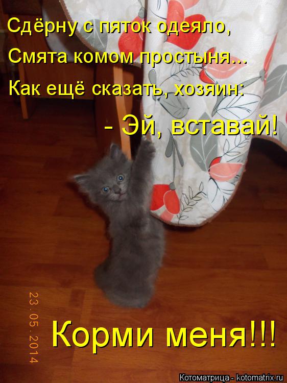 Убиралась дома, кошка вокруг скачет. Краем глаза замечаю, что она запрыгнула в детскую кроватку. Оборачиваюсь к ней, а кошка человеческим голосом мне и говорит: — Кушать хочу!