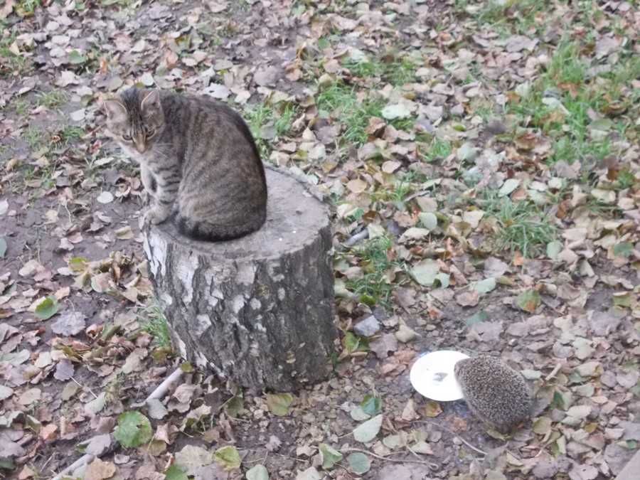 спасибо за фото,доброжелательная какая кисюня,ежик несколько хитроватый и храбрый!