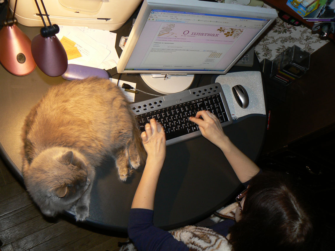 (вот так мы обычно "висим" в интернете, хорошо, что ещё не лёг на клавиатуру, а то не сдвинешь!)