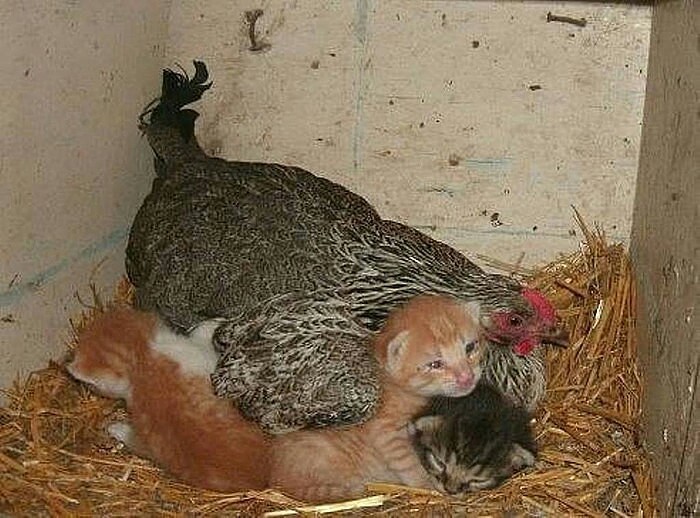 Марья, какие чудесные фото Вы показали! Ну разве не прелесть? Без улыбки не посмотришь! Особенно понравились спящие котята и собачка, ещё с курицей - умилительно!