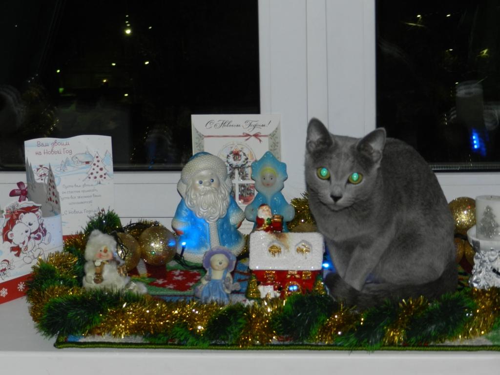 Наталия72, бархатный кот, а глазища изумруды инопланетные!, с новогодней мишурой и грушками - просто часть композиции! ::