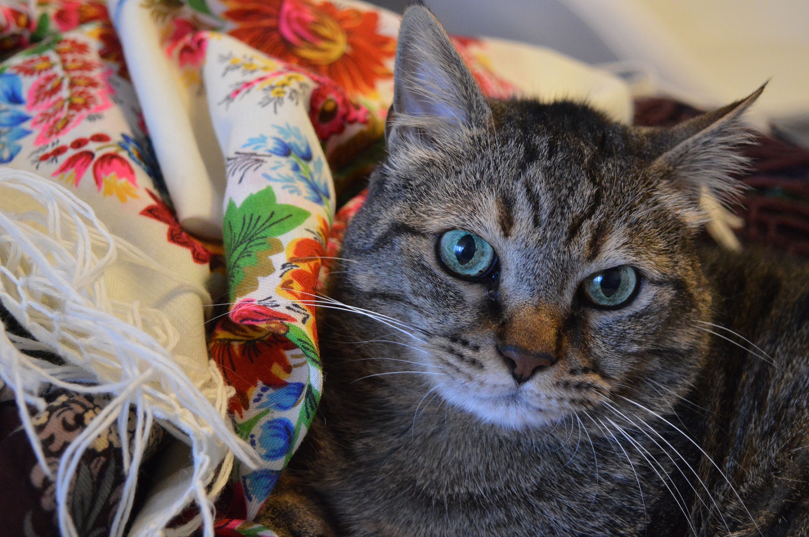 Очень серьезная и своенравная кошечка. Есть предположение, что она частично дикая кошка, которую нам получилось приручить. Других животных и людей не признает, Нушу терпит.