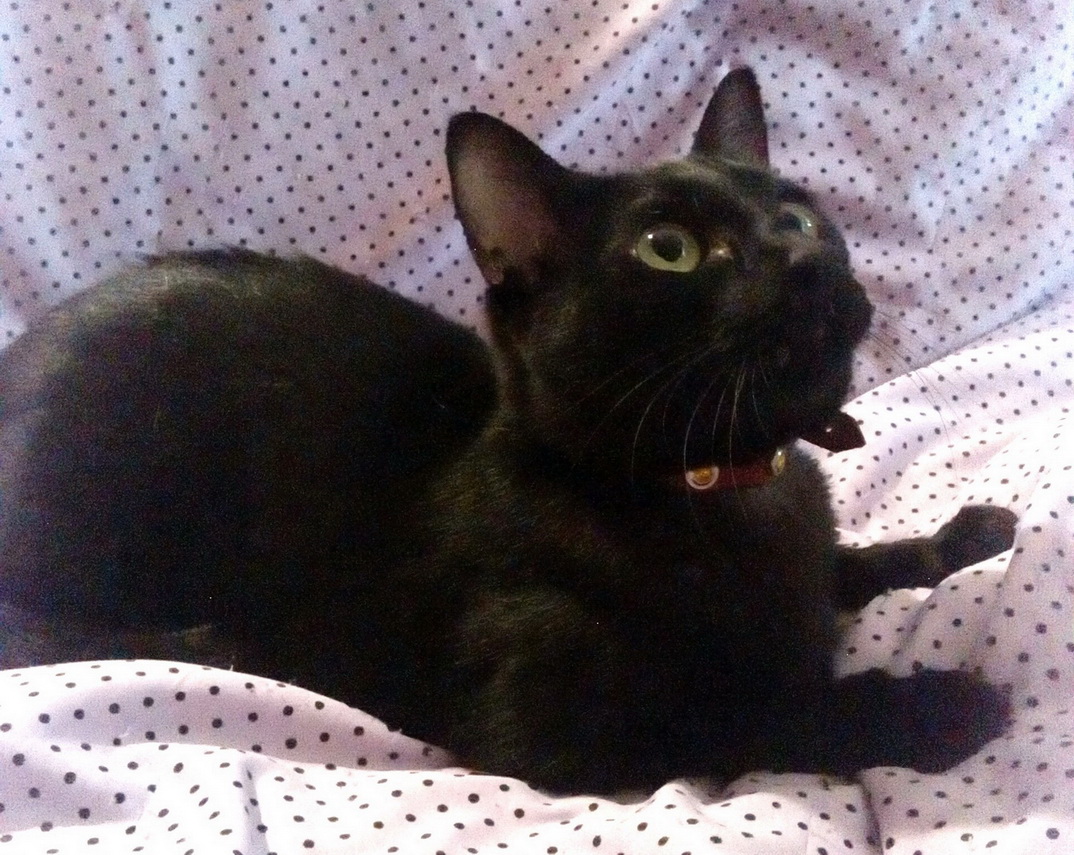 3 хвостик. Кошечка Машенька. Была подобрана в стоге сена в конце октября прошлого года, говорят она там мяукала 3 дня. Неделю шли дожди... и как раз в эту ночь передавали сильные заморозки. мы взяли этот маленький мокрый черненький комочек. Она была совсем крошечной, не умела кушать. была истощена. Мяукать уже не могла. Муж согласился взять ее так как оставить ее там означало убить. Так как пить она не могла я набрала молока в шприц, после первого миллилитра у нее так сильно забурчало в животике. Котеночек не отходил от меня ни на шаг, ее назвали моим хвостиком, даже когда я мыла посуду она вкарабкивалась на меня по одежде и даже 1 раз упала в мыльную воду. На лоток стала ходить раньше чем лакать из миски. Через какое то время я стала замечать у нее гнойные сопельки возле носа и хрипы в легких, мяукать она еще не могла, голоса не было. Понесла к ветеринару, сказали что у нее сильной воспаление легких. и назначили очень много уколов и прочих лекарств, котенку поставили возраст около 4х недель. Я тогда была в отпуске и носила ее каждый день на уколы, судя по ее поведению они были ужасно болючие, так как этот комочек даже рычал. Спала она у меня на плече. Мои кошки ее конечно очень долго не принимали, шипели, рычали, особенно Ксюша, хотя сейчас даже вылизывает ее. она наверно месяцев до 8 спала у меня на голове, а потом нам стало не хватать места на одной подушке и она стала спать между нашими с мужем подушками. изначально мы ее планировали отдать в добрые руки, но я так к ней привязалась, что на звонки отвечала, что котенок уже пристроен. Голос у Маши появился, но немного скриповатый, так смешно когда она со мной разговаривает. Мужу всегда кажется что она говорит мне "мама". Конечно кошечка покастная и егозистая но я ее очень люблю, как доченька она у меня