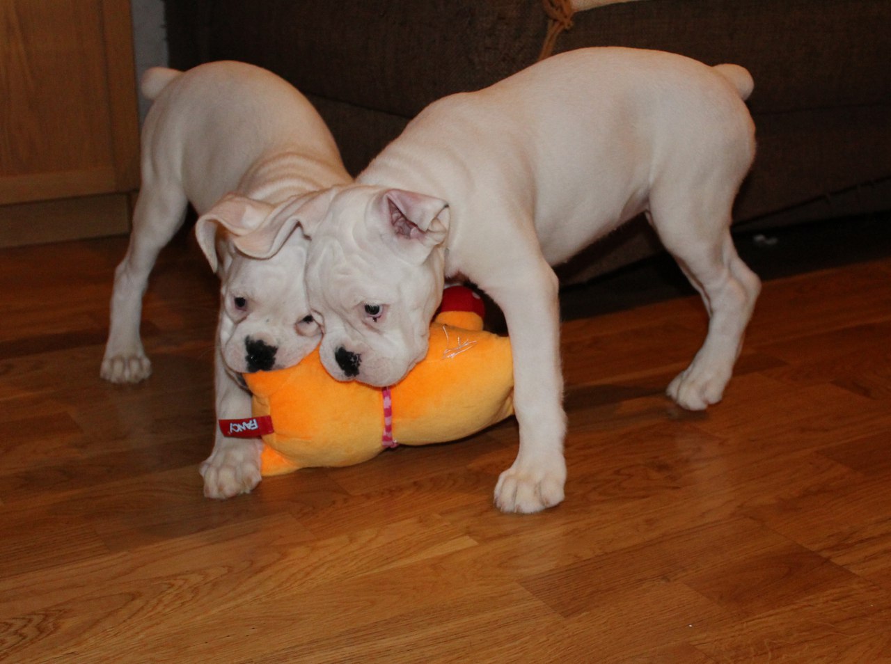 ALLA OK.- да, Марфуша тоже дочь Тильды, всего родилось 8 щенков, из них две беленькие девочки. В России и Европе боксеры этого окраса к дальнейшему разведению не допускаются, признает их только американский клуб, если я не ошибаюсь. Внешность, конечно, особенно у щенков- умилительная, но характер настоящий боксерский- веселый и куражный ))