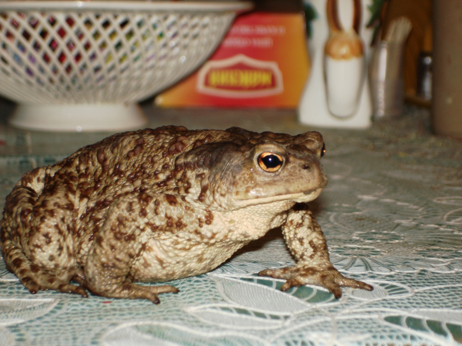 Равилюш, это кто? Заколдованный принц или просто ляга? Мы тоже земноводных любим, с прогулок притаскиваем жабок и поселяем на участке. Перед новосельем - фотосессия на обеденном столе