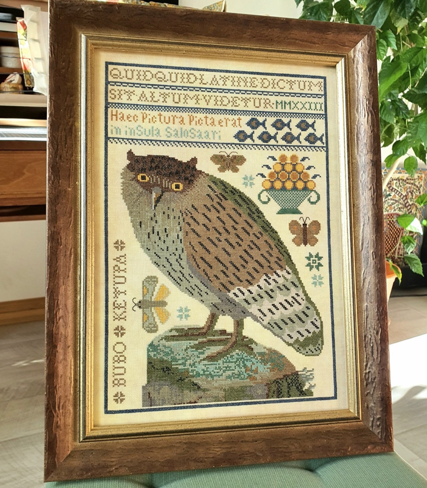 Я дошила совуню. Оформила тоже. И вот посмотрите, как деревянный багет в образце может отличаться от того, что приходит в новой партии и получаеся в итоге! На коллаже выбранный мной багет (слева) и этот же по артикулу в готовом варианте. Но то, что получилось, мне кажется, не хуже. Как думаете?