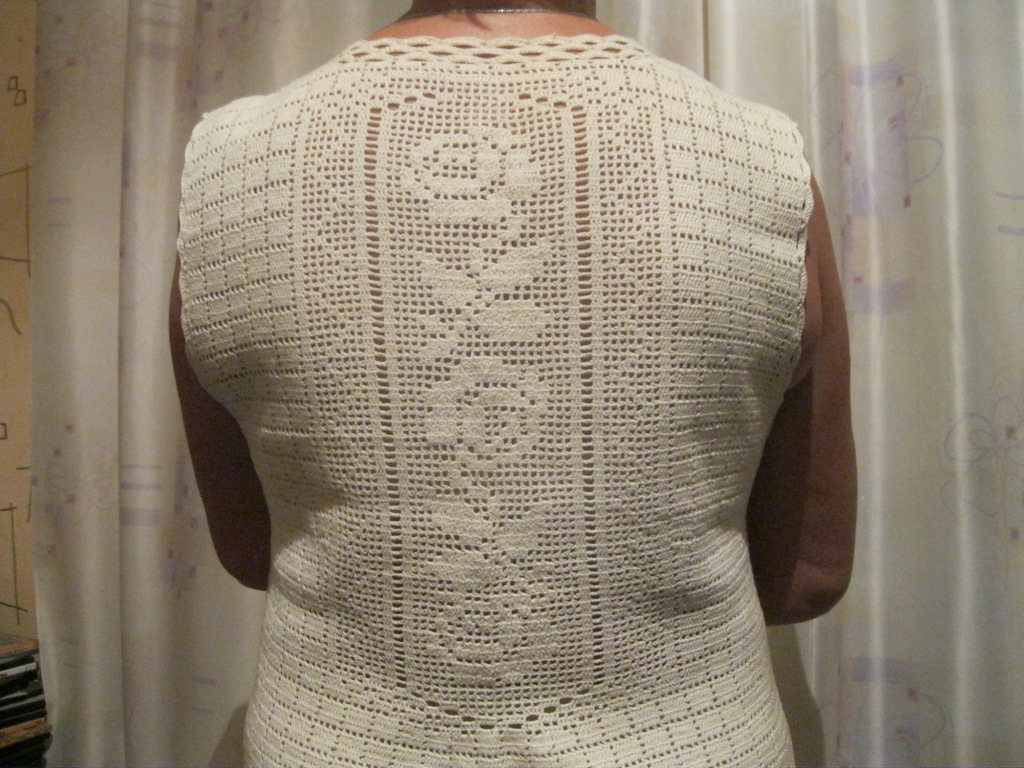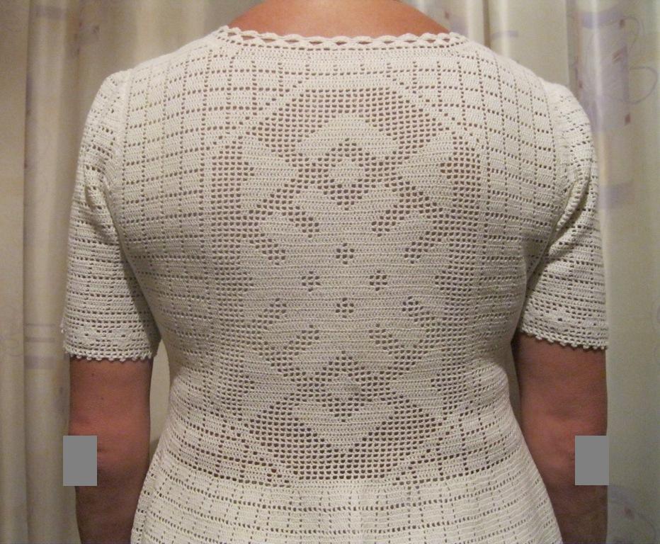 Благодарю, доброго времени суток всем. Вязать крючком меня научили в школе № 23 в Балашихе на уроке домоводства. Льняное и хлопковое платья наверное вечные. Я уже давно пыталась их спрятать в "сундук", а тут как раз в природе случился катаклизм и наступила страшная жара летом. Так я только этими платьями и спасалась. Почему-то народ забывает и каждый год спрашивает, что это у меня за новое платье. А шерстяного мною вязано-перевязано - и не перечесть. Что-то - давно уже не модно, а что-то чистошерстяное с ангорой ожидает ледникового периода в природе. Спасибо за добрые слова, показываю спину хлопкового платья и кофточки на пуговках спереди.(Кликните, чтобы почитать оффтопик)...Алла писал(а):Каффа, замечательно не только то, что Вы сделали такую красоту, но и то, что Вы форму держите! Платья замечательные. Заинтриговали спиной, может, хотя бы на вешалке покажете?