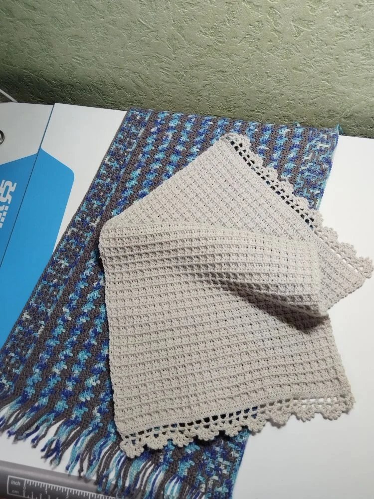 Связала два полотенца из хлопка. Не спрашивайте, зачем. Если б я задавалась этим вопросом, у меня б и платков не было).