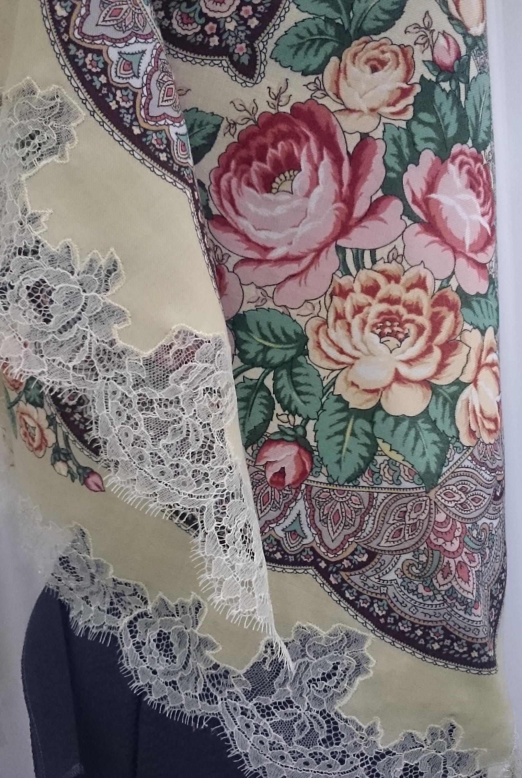 Хорошо подобранное кружево уместно почти везде. Тем более с нашими платками и шалями.