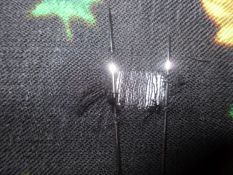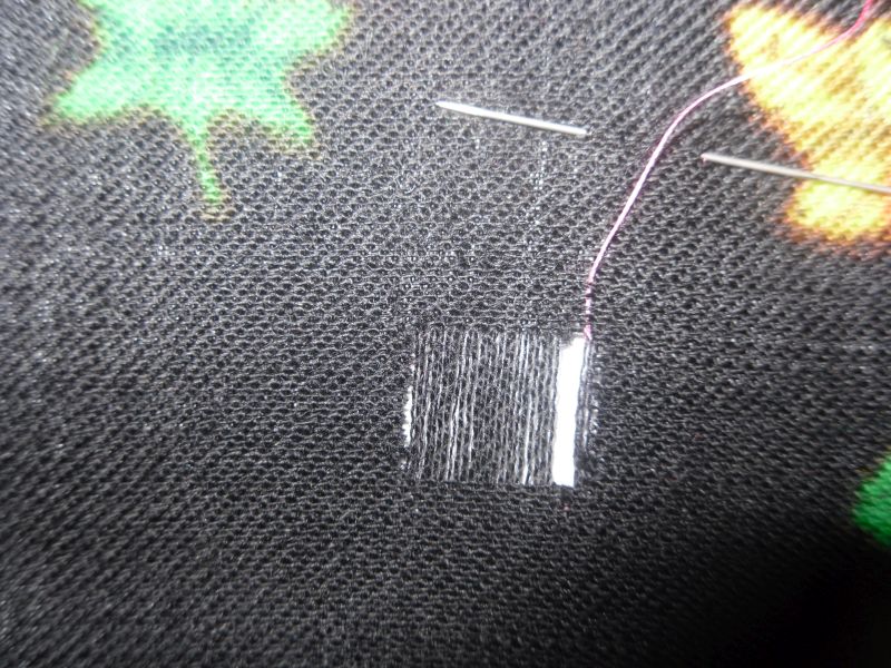 ... а без дополнительного укрепления пореза страшно что расползется штопка на шелке...