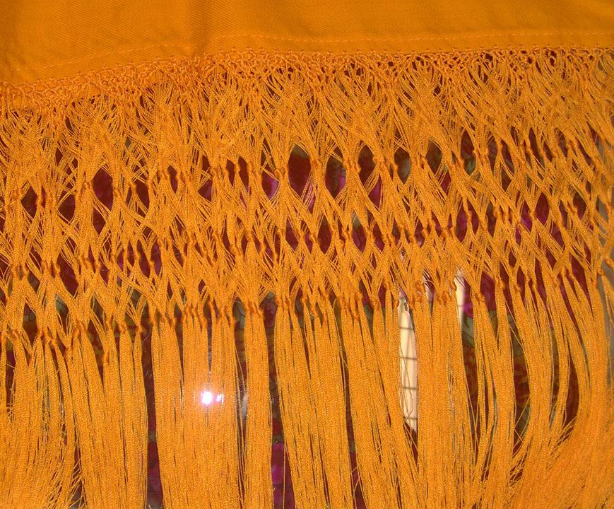 Вот туркмены и вяжут, простую бахрому, но ооочень густую (просто сплошным рядом узелки) и подлиней, чем на простых платках.