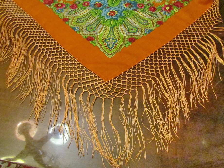 какая Вы умница, до чего же красивую бахрому сделали, шали просто изумительно смотрятся, обе! И к Разводному так хорошо нитки подошли, а ведь к оранжевому цвету трудно было найти, наверное! Ручки золотые у Вас, очень красиво!