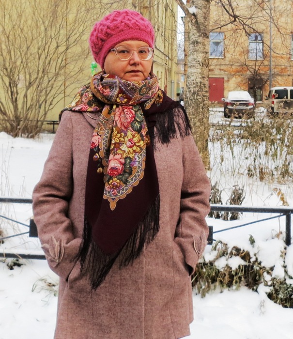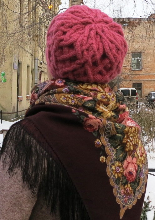 мне очень понравился берет в комплекте с Праздником покрова. Цвет так хорошо угадали - прямо к розочкам! Подошёл беретик к платку и Вам к лицу. С этим пальто хорошо. Вам идёт Праздник покрова-17, очень приятный и гармоничный платочек. Я всё удивляюсь, как Вы лихо береты вяжете, прямо как пирожки печёте! А ведь это кропотливая работа, особенно связать с орнаментом! Вы настоящая мастерица!