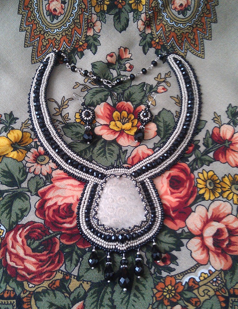 Этот камушек - окаменелый коралл, купила специально под Серебро 19. Хотела бежево-черное украшение. Сделать то сделала, но не моё оказалось