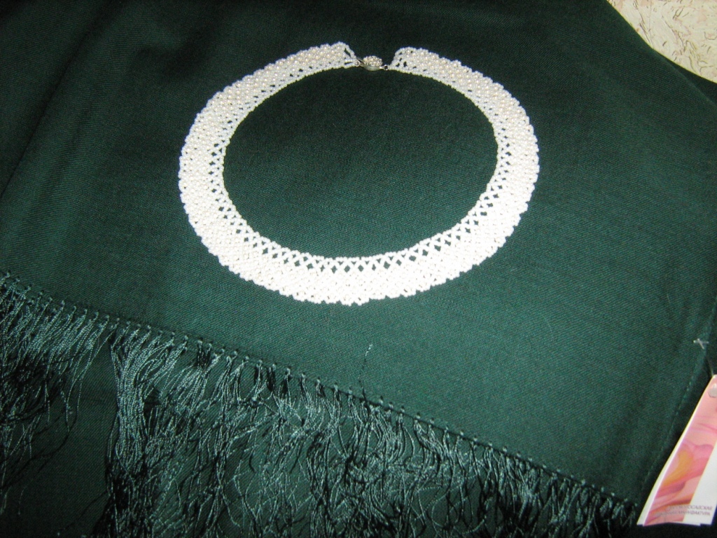 Показываю свою давнишнюю работу. Для дочери сделала колье из бисера и маленьких бусин.