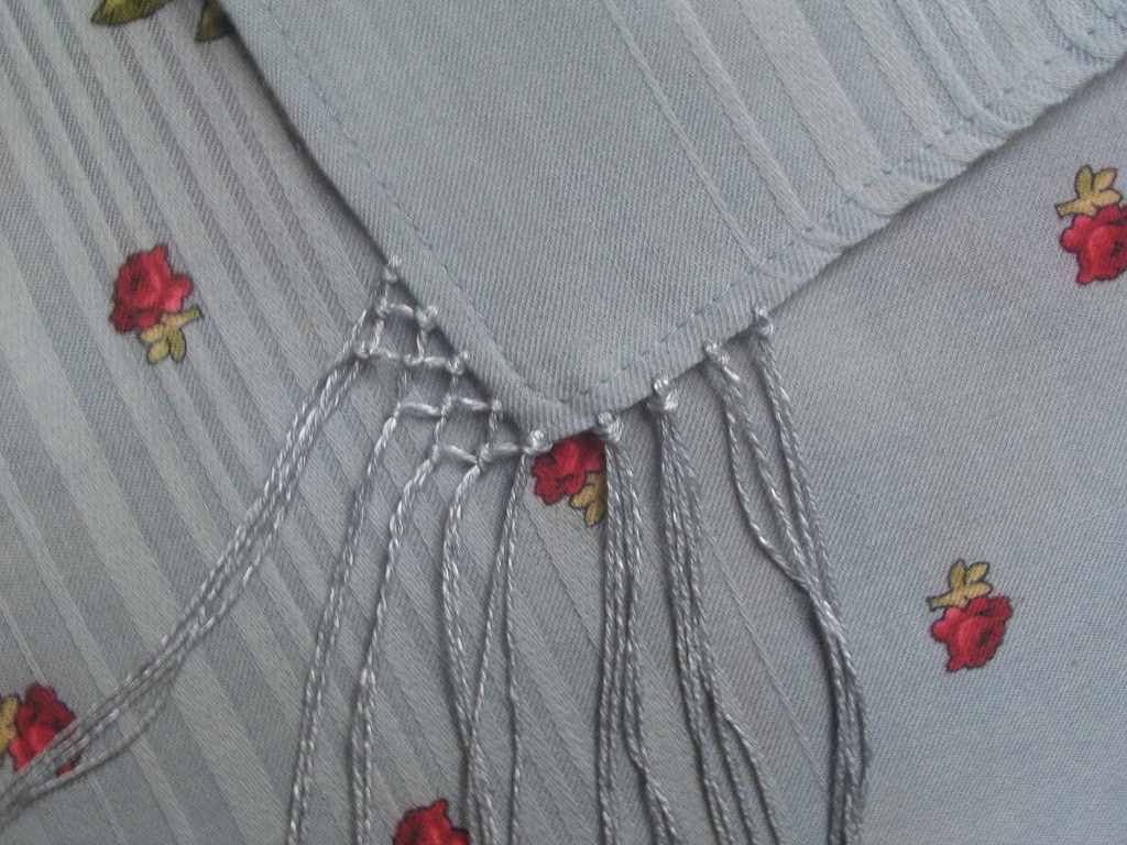 Пионы-14а, синева уходит в бирюзу (не знаю, насколько врет мой монитор - по факту мой плат позеленее чем другие на фото). Цвет, на мой взгляд, наикрасивейший, но ниток на бахрому я никогда не подберу, скорее всего.