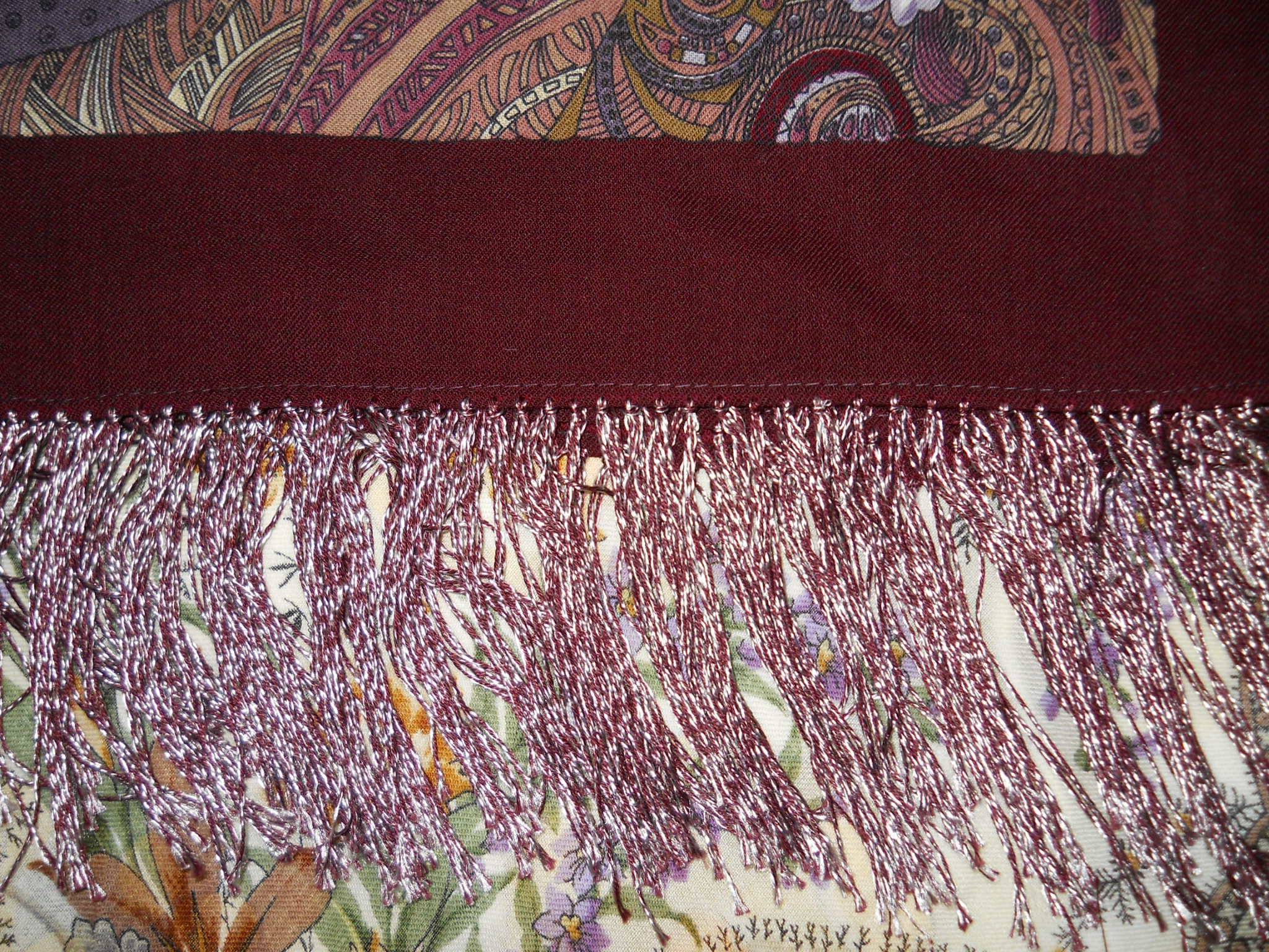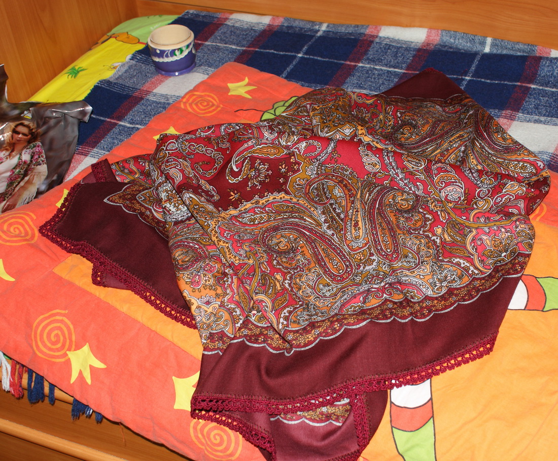 Обвязка гармонирует с бордовым кантом (или как это назвать? имею в виду тоненькую полосочку, которая завершает узорный край) на платке.