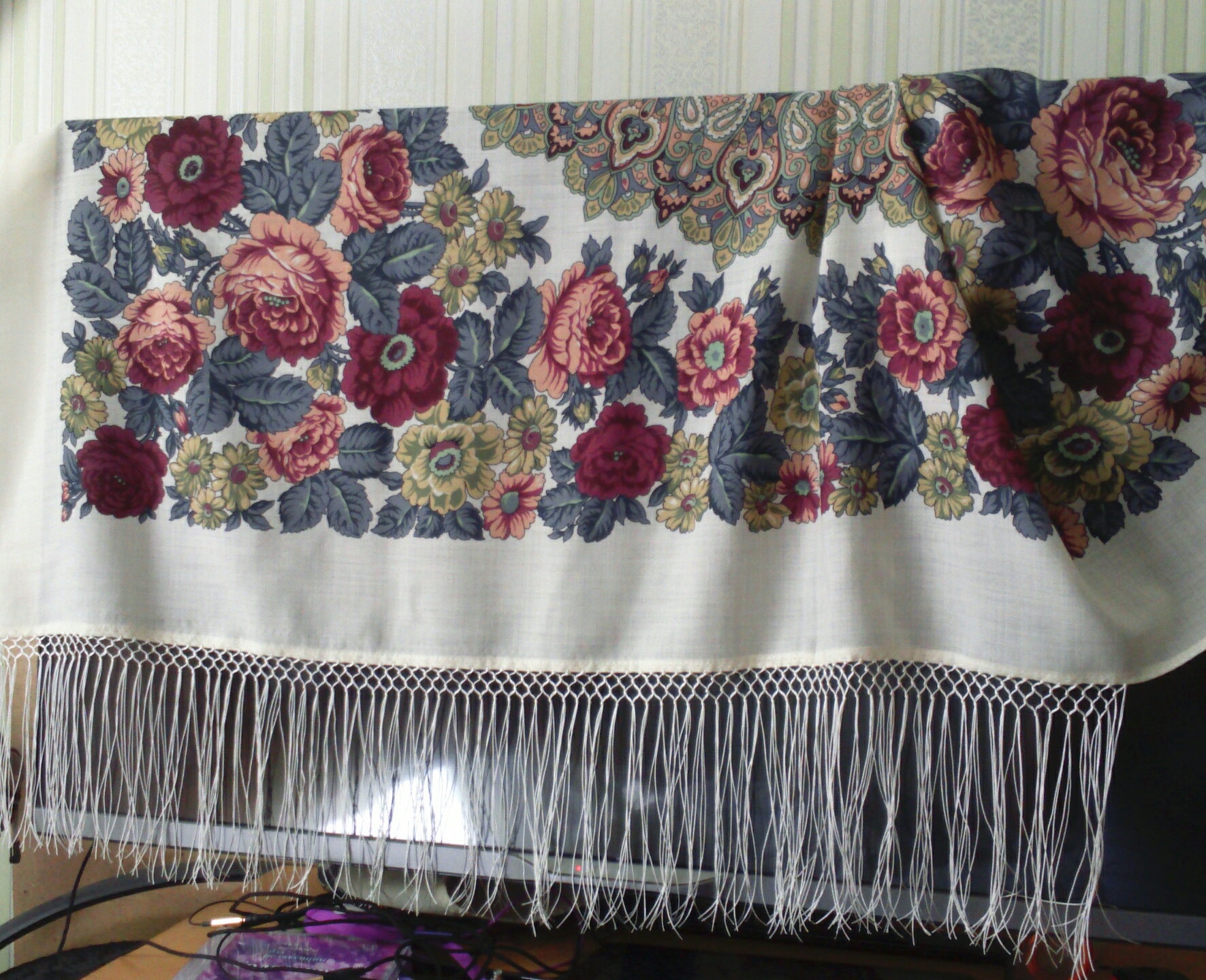 Эти легкие "крылышки" преобразили Белые розы-0", теперь видно рисунок на шали, бахрома тонко подчеркивает его красоту и сочность колорита, а не выпирает на первый план. ИМХО