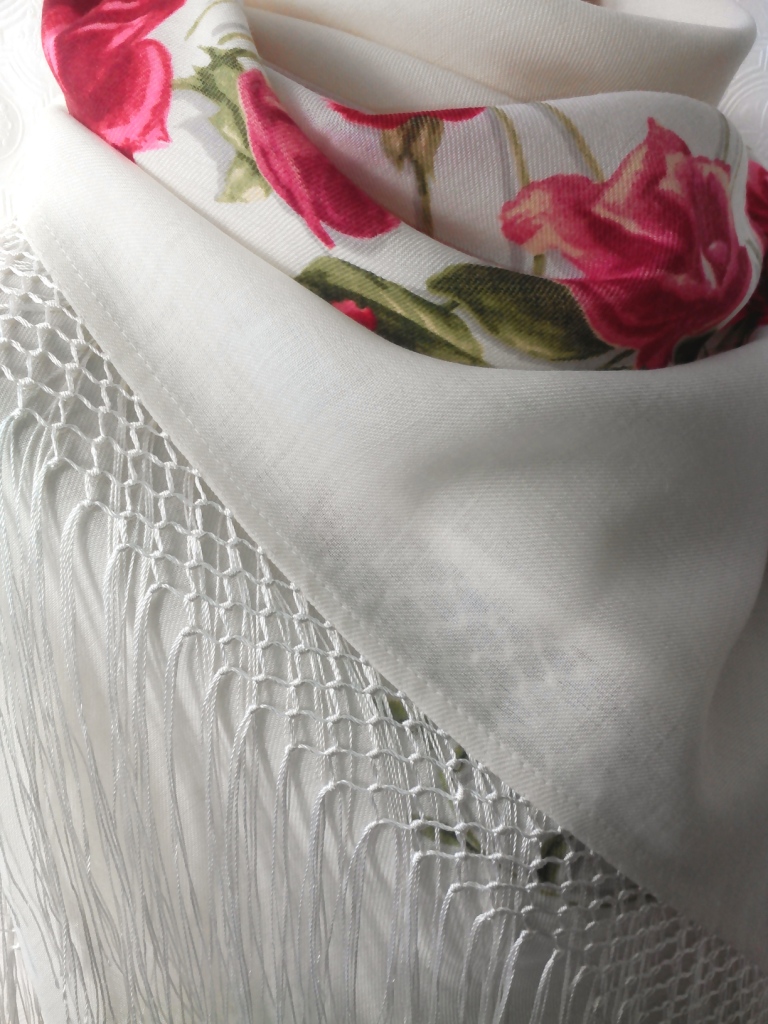 И еще хочу показать Розы на снегу. С бахромой клетками, получилась роскошная летняя шаль. Эх, жалко только что платок в жизни, не такой белый, как на фото получился :lol: