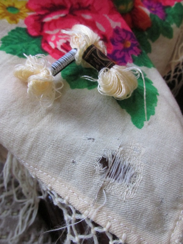 Добрый день! По просьбе мамы, выкладываю фото с реставрацией недавно появившейся у нас Леночки К.Зиновьевой, мама очень хотела эту шаль, её не смутило наличие дырок нисколько, она очень довольна, может быть кому-нибудь эти фото помогут спасти любимую шаль:
