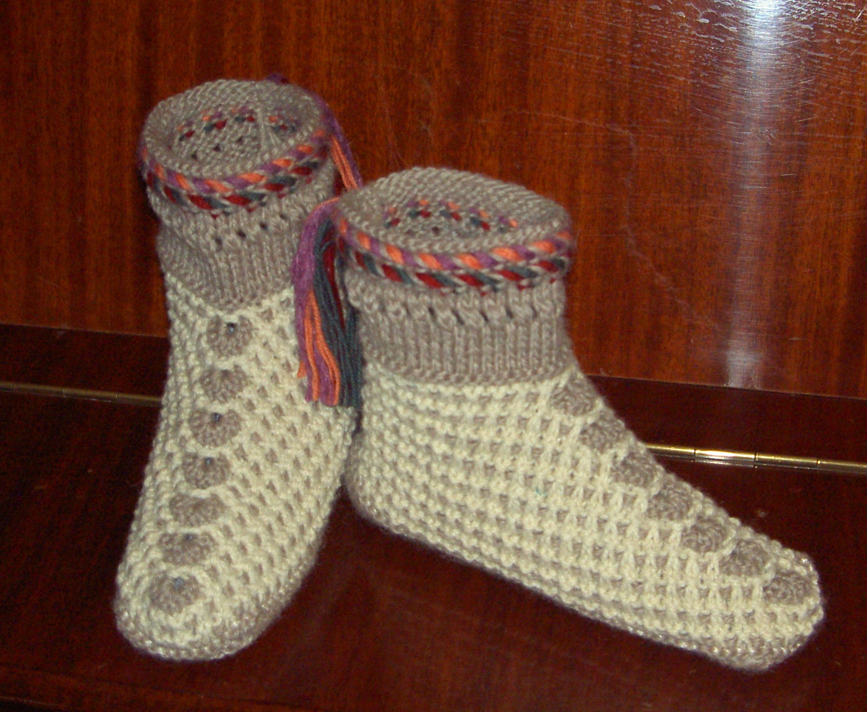 схему этих тапочек нашла в инете, но привязала к ним невысокие голенища и получились ботиночки