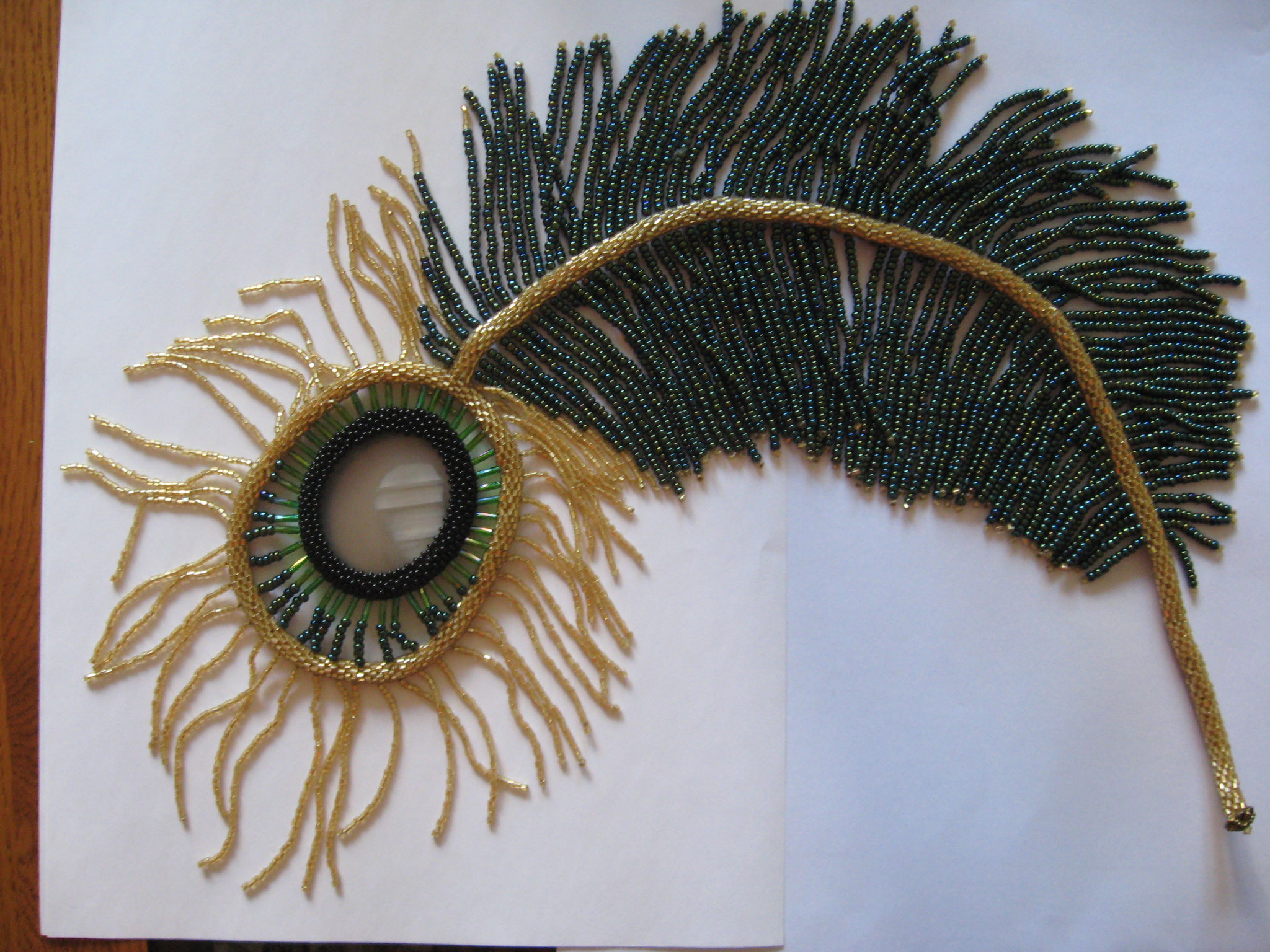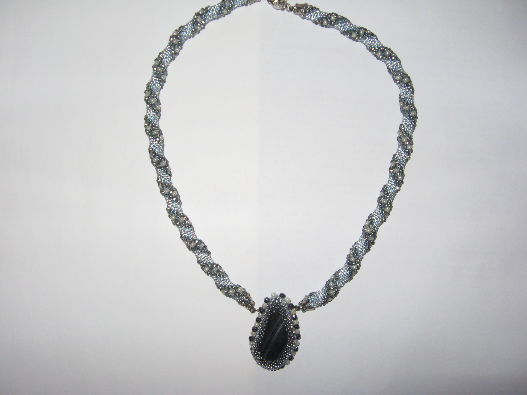 И вот ещё одна вещица. Пока не определилась с её назначением. Первоначально хотела сделать такое ассиметричное колье. Но в итоге оно получилось коротковато. Только на тоненькую шейку. Поэтому просто лежит, хлеба не просит.
