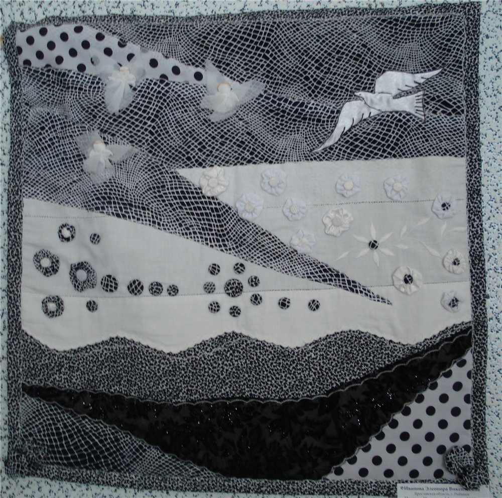 И ещё последние... а сейчас зашла на сайты с пэчворком, там тааакие работы :o , прямо и расстроилась...ну, да ладно, пусть эти тут будут, их я живьем видела :) верхняя "Морская пена" такая нежная-нежная, как свадебное платье, совёнок такой пушистый-пушистый, и перышки как настоящие, так и хотелось потрогать :)