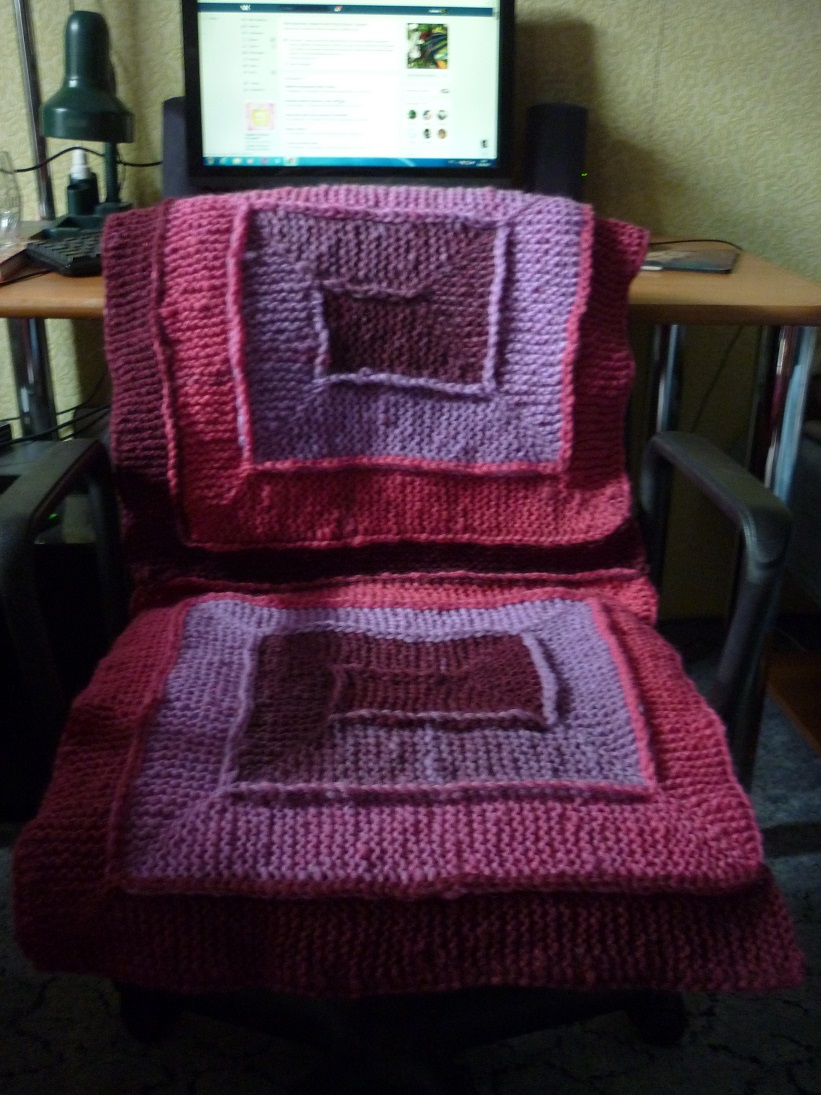 накидушка на стул, по мотивам пледа из 10 петель. К холодам готовлюсь-попу греть :lol: 100% шерсть. Кауни, ровница