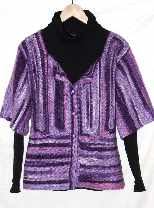 Интересная у вас модель фиолетовой кофты . Мне понравилось ,очень удачная для секционной пряжи . Беру на заметку .Спасибо
