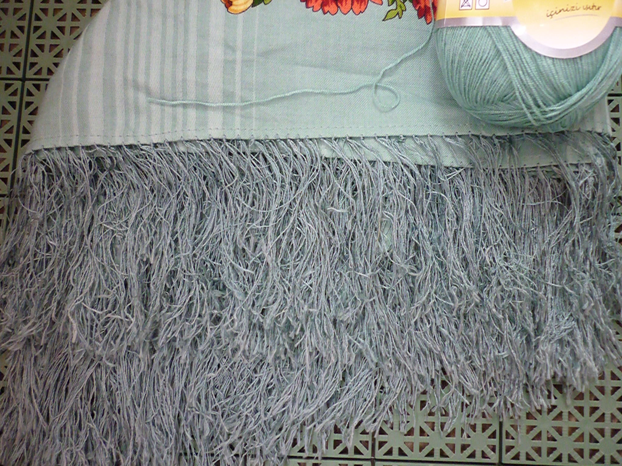 Внимание! Внимание! Всем обладательницам бирюзового Изысканного! Я нашла нитки для замены шелковой бахромы этого ужаса под названием шелковая бахрома. Не знаю как у кого, а у меня практически через несколько месяцев бахрома превратилась в "мочалово". Ну, нитки не шелковые, и даже и не шерсть. А что делать....