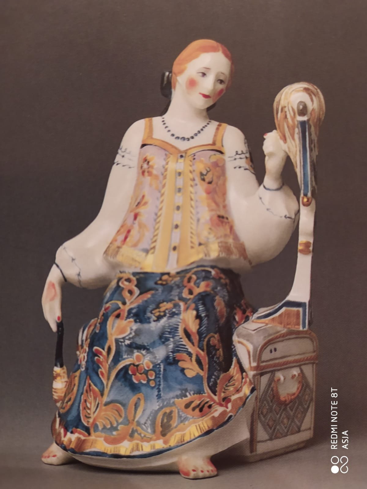 Нашла прелестную фарфоровую Пряху, ЛФЗ. Ну если душегрею мою можно посчитать условно похожей,то сарафана такого нет...надо шить.. Что меня несколько и обескуражило,и умилило - педикюр пряхи. Скульптор,художник Ольга Матвеева,1989 г.