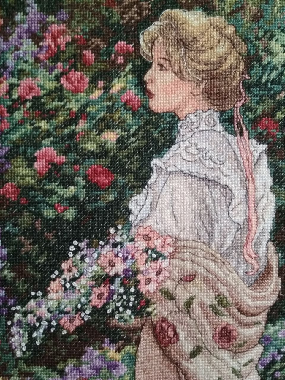 А у меня завершена работа с контурными линиями и прочими украшательствами ( шов назад-иголку, французские узелки и пр.)...