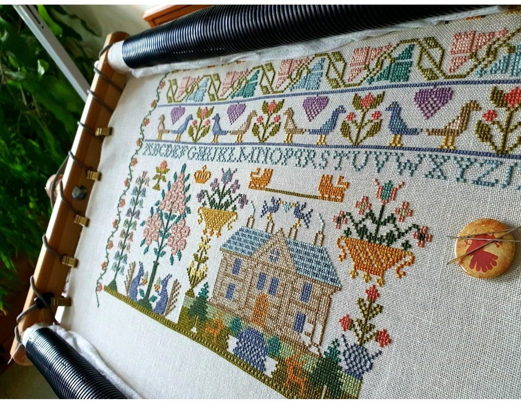Домик по ключу очень светлый, вот просто цвета канвы, мне же хотелось деревянный, а не белокаменный, заменила ниточку.