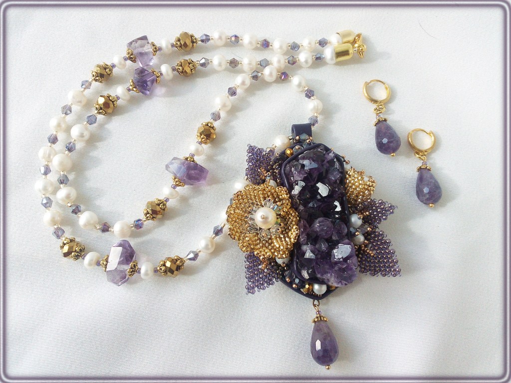 Ну и последняя моя работа. Большой комплект : колье, лариат, 2 кольца, серьги, брошь. Делала её целый месяц.